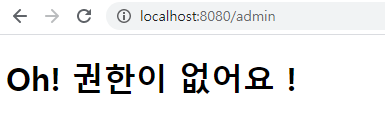 그리고 TEST계정으로 /admin , /user , /member의 url을 직접입력해 접근을 시도하면 모두 권한이 없는 페이지 에러페이지로 이동될 것이다 ( config설정의 /accessDenied_page를 타서 )