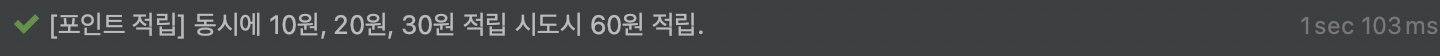test("[포인트 적립] 동시에 10원, 20원, 30원 적립 시도시 60원 적립.") {