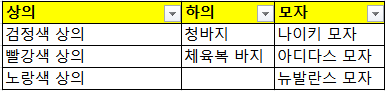 예를들어 상의3벌, 하의2벌, 모자3개가 있다고 하자.